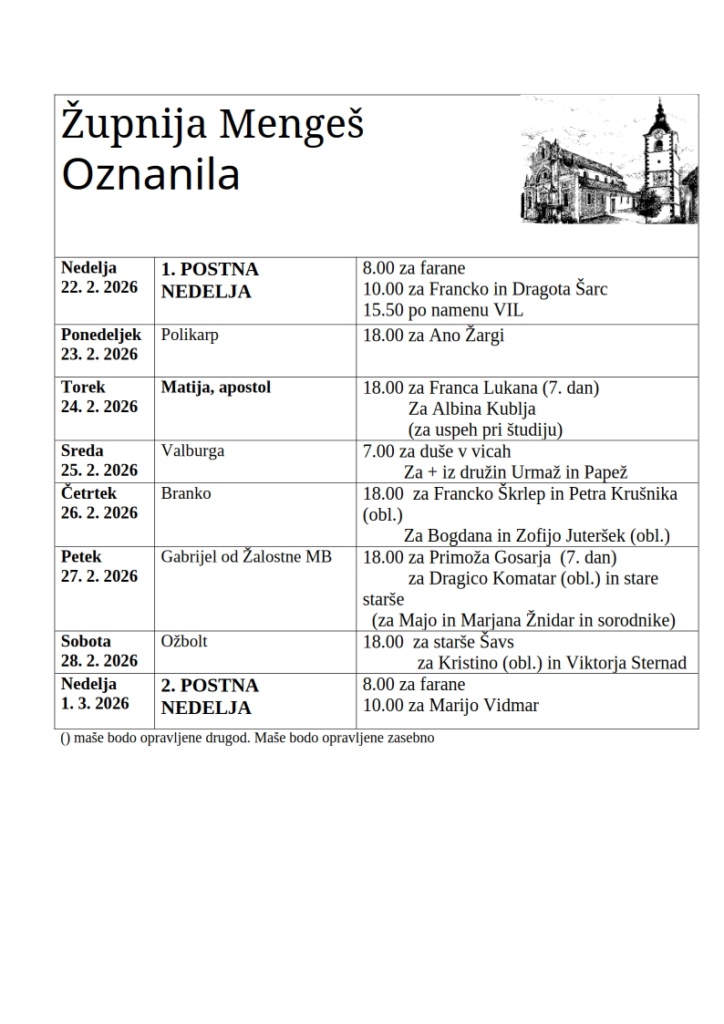 V sredo ob 18.00 bo sestanek za starše 7. razreda v župnijskem domu.